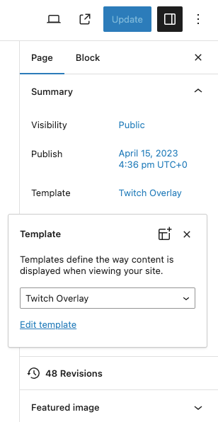 First, you'll need to create a layout template inside your theme. In the WordPress admin panel, go to Settings --> Twitch and open the General tab. You can find the Generate Overlay Template button in an Overlay subsection.